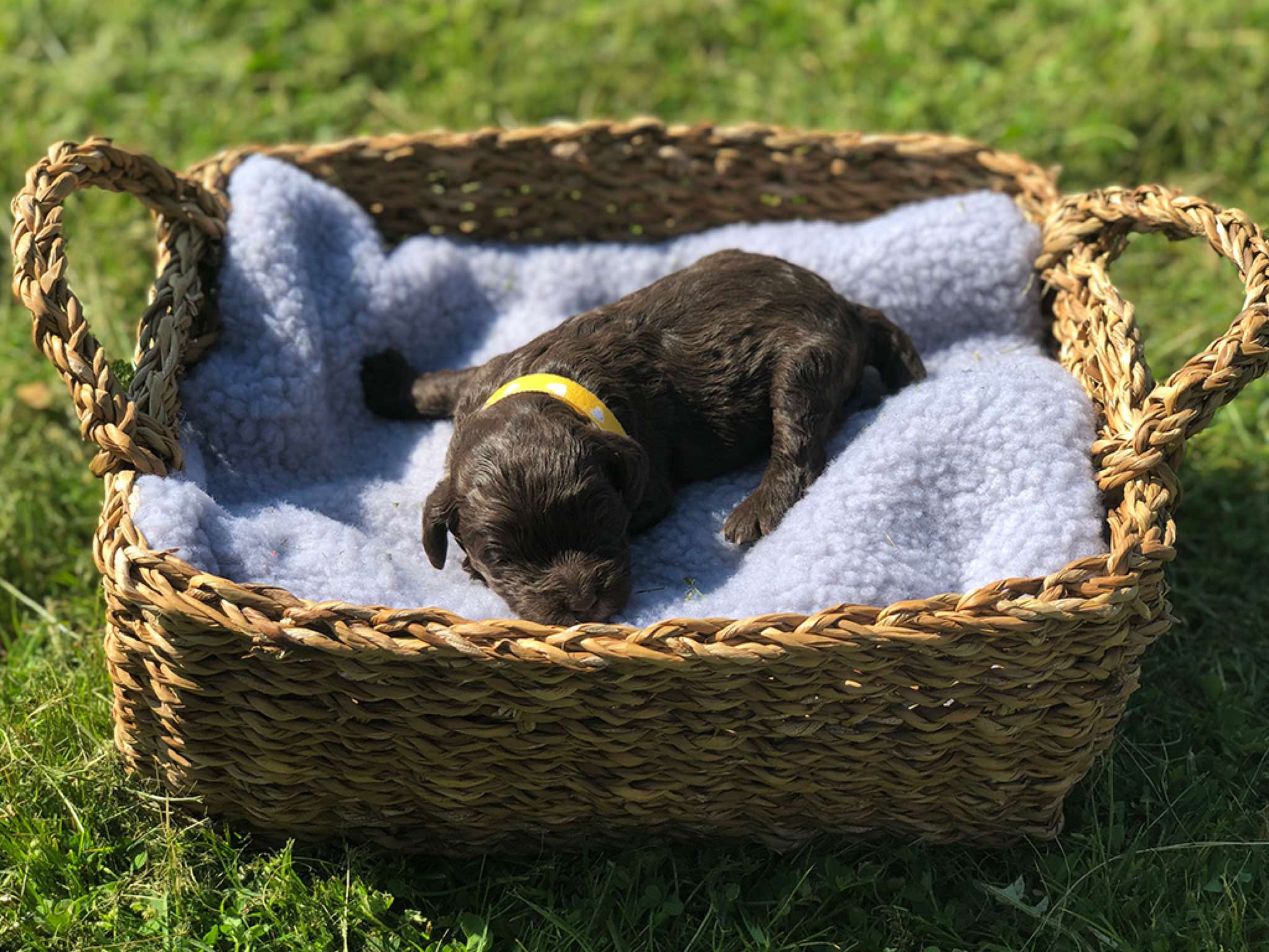 • Yellow Collar Girl, Choc/Cafe Colour, Curly Fleece Coat, Miniature Size