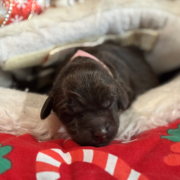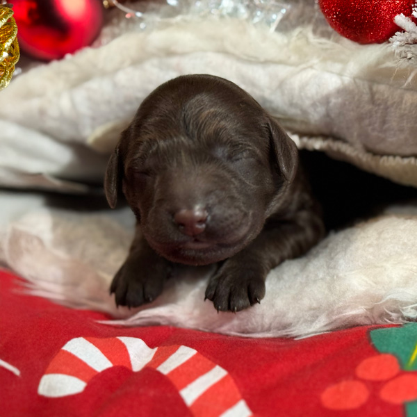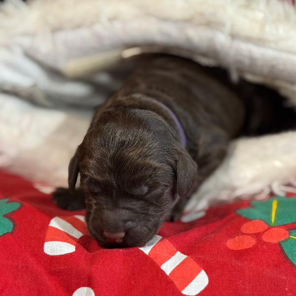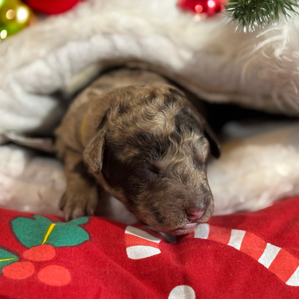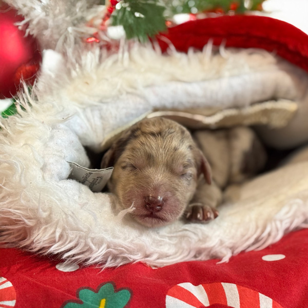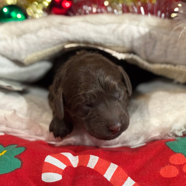 As we settle into our post-Christmas, holiday bliss we are blessed with even more sweetness! For those who had written on Santa’s wish list the desire for a miniature size puppy, your dream has come true. Tiramisu has given birth to three superb boys in shades of creme caramel and chocolate. These are multigenerational Australian Labradoodles. Expected weight is between 8 and 12 kgs in adulthood and roughly miniature poodle size.