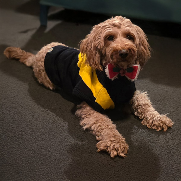 Saffy is our cheeky, ray of sunshine. Always smiling and very sweet natured. Saffron is very energetic. She loves playing chasey with her brother, Ian the Bengal cat and her sister, Kalu the spoodle" Charmaine